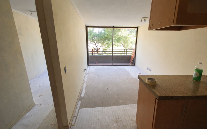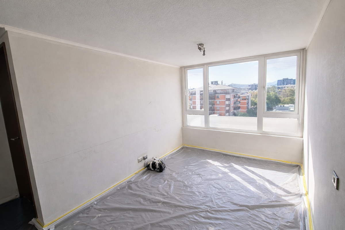 Proyecto de renovación interior ejecutado en departamento ubicado en la comuna de Providencia, contemplando retiro de papel mural existente, empaste de muros y pintura completa de cielos y pintura de muros.