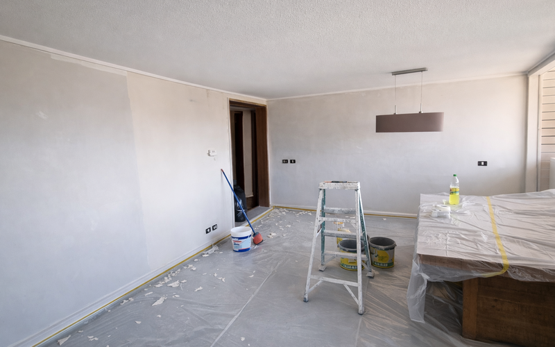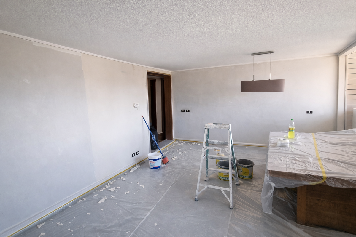 Trabajo de renovación interior ejecutado en departamento ubicado en José Manuel Infante, contemplando retiro de papel mural existente, empaste de muros y pintura completa de cielos y paramentos verticales.